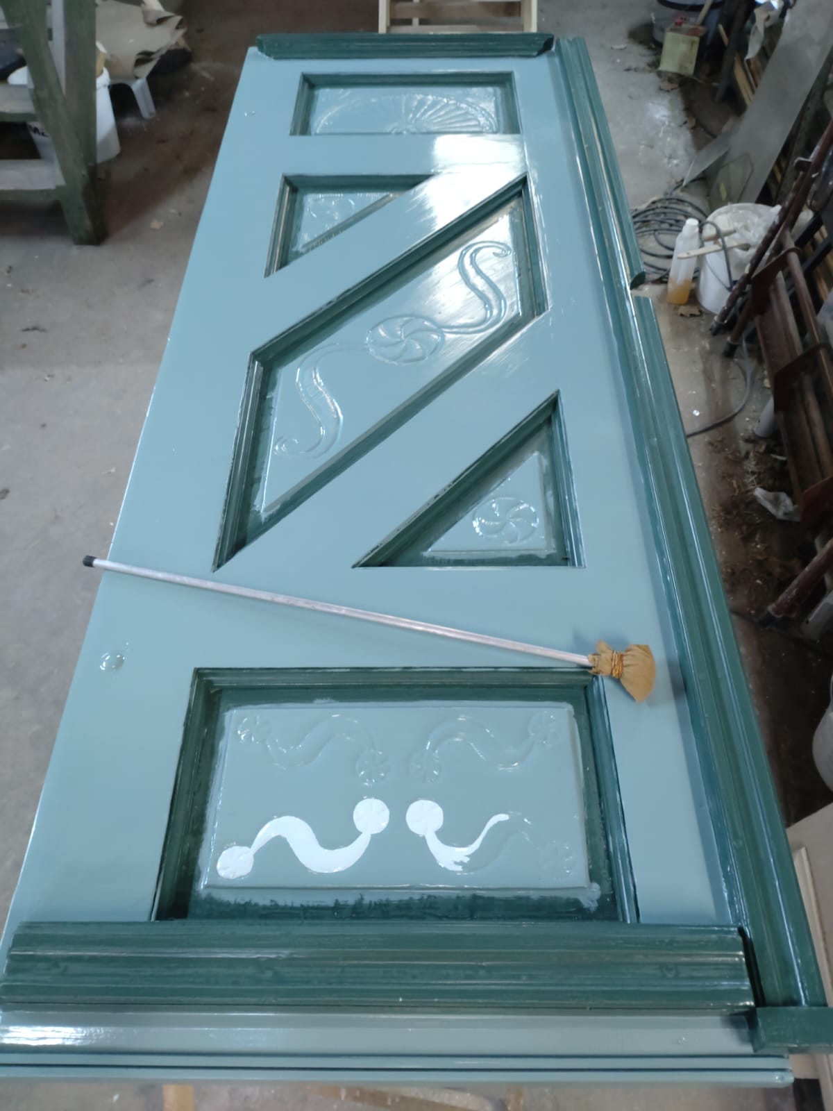 Die Tür wurde anschließend mit Tungöllack lackiert.